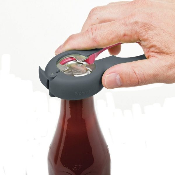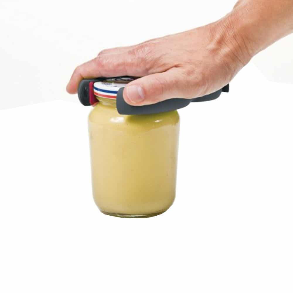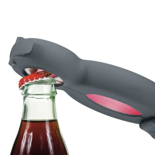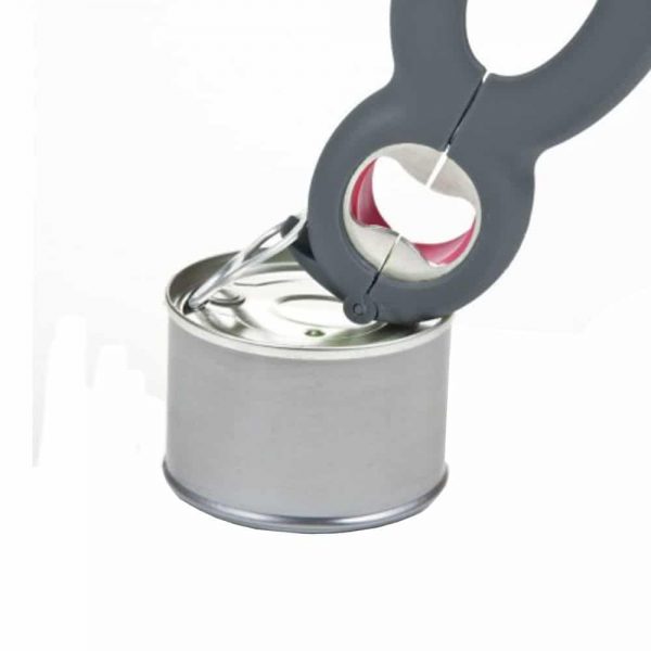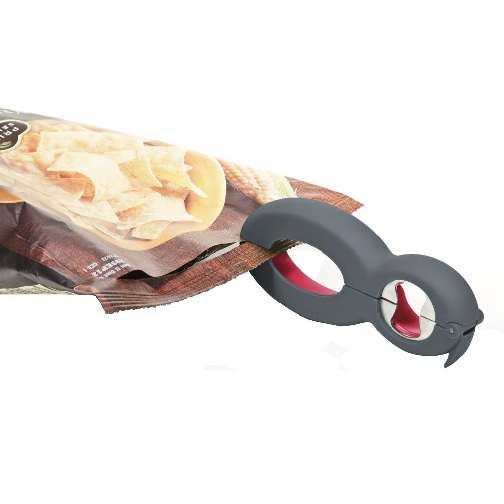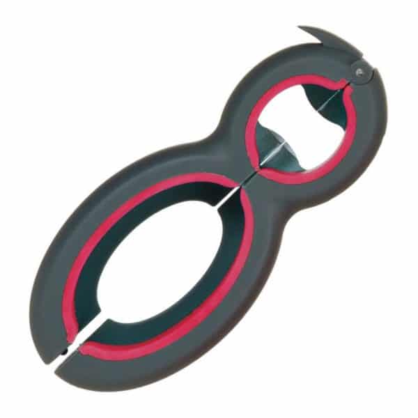 This Multi Opener has a durable and comfortable grip and opens six different types of seals and lids with ease. The unique tool removes hard-to-grasp safety seals, opens metal bottle caps, can ring pulls, and stubborn jar lids or bottle tops. The unique enclosed blade feature cleanly slices open tightly sealed bags.