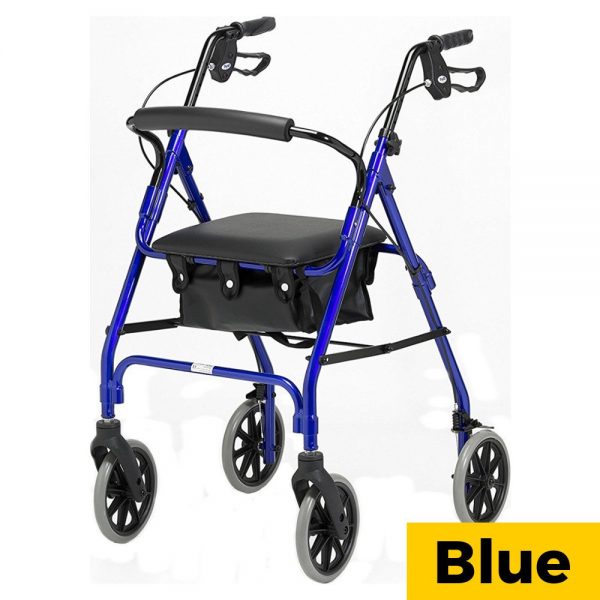 This aluminium 4-wheeled walker is sturdy yet easy to manoeuvre, and incredibly lightweight. Featuring loop brakes so the walker can be stopped (by squeezing) and locked (by pushing down). Suitable for both indooruse, the walker also easily folds away for transport and storage. This particular model comes complete with bag for storage or shopping, underneath the seat. The walker is fitted with a padded seat, allowing users to stop for a rest wherever they are.