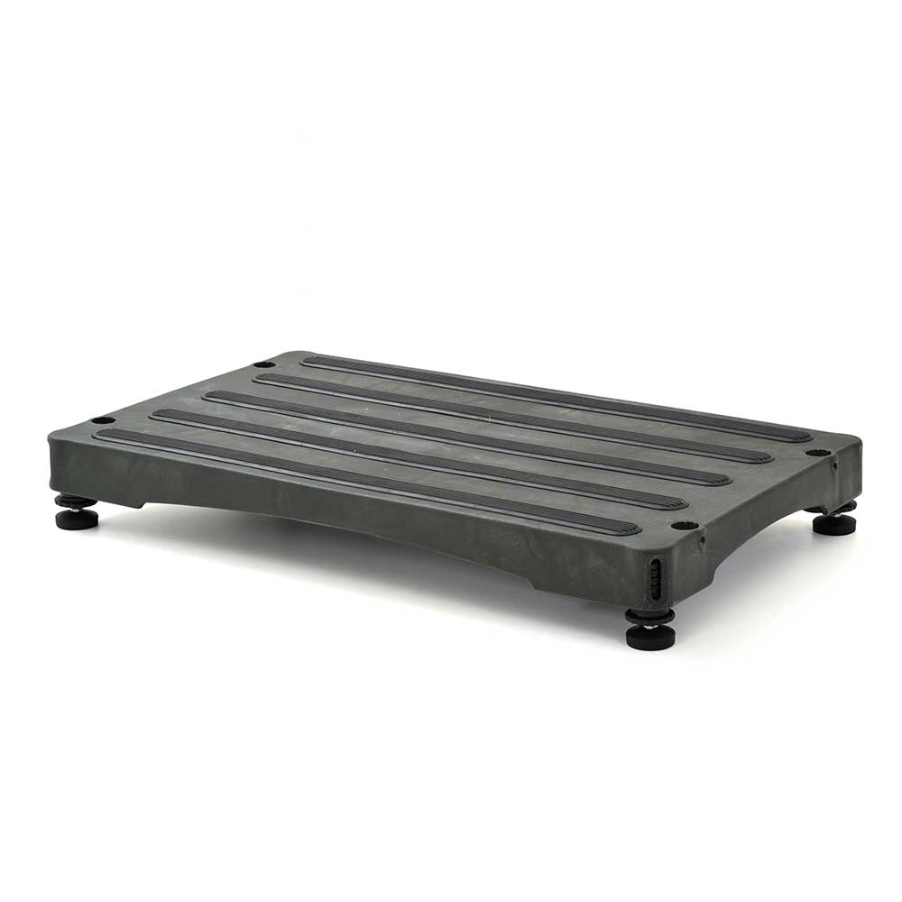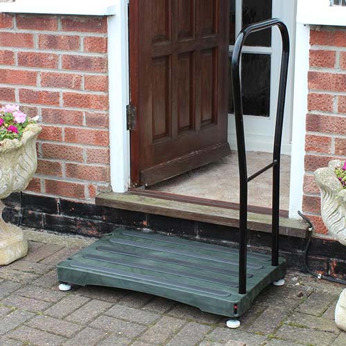 The Bigfoot Half Step is height adjustable and you can add one or two support handles by simply clipping them in. It halves the height difference between the door and the ground, allowing the user to be steady on its large surface before attempting the next step.The support handles fit in without tools, if you want to avoid permanently fixing a grab rail by the door and can be removed for transport.The new design gives an impressive 34 stone (220kg) maximum user weight, with fixed grips to give our best possible slip resistance.