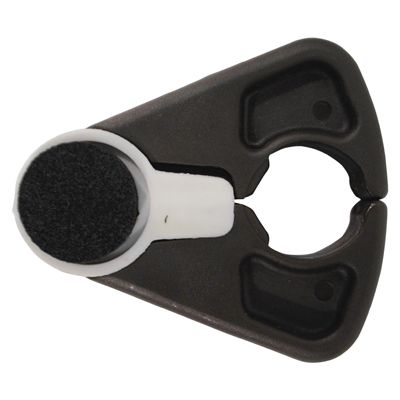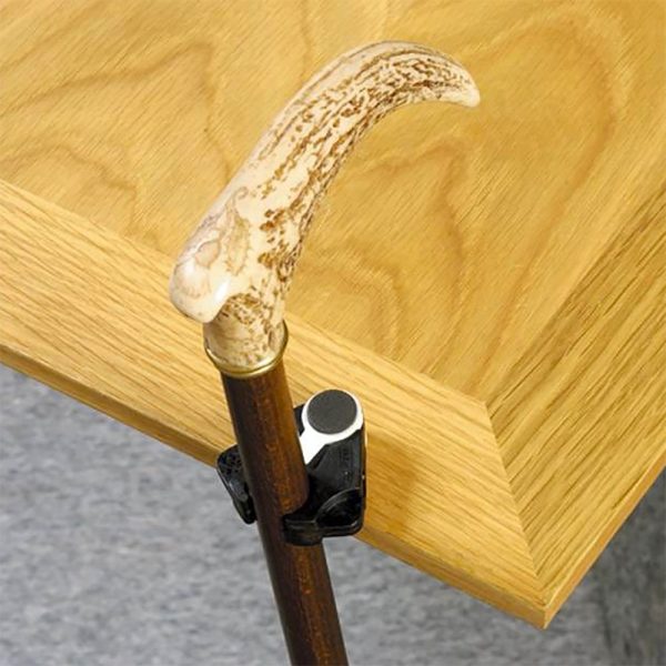 A clip-on holder balances the cane and a rubber pad helps keep the holder from sliding off the table. The Cane/Crutch Holder securely grips a cane or crutch with a 16 to 25mm diameter.