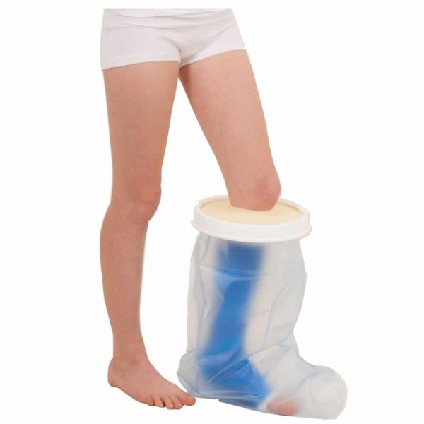 This comfortable waterproof protectors simply slip over the cast or dressing on the leg to protect them when taking a bath or shower. The cast protectors are re-usable and are intended for single patient use only. Not suitable for use with open or undressed wounds or when swimming.