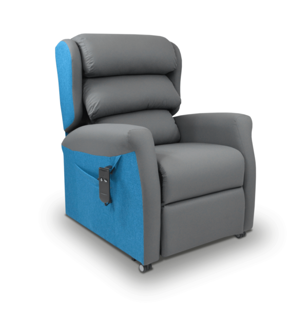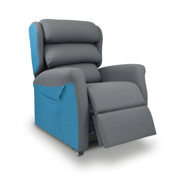 The DSL Concerto is a stylish and modern rise & recliner with a number of variations available. The chair features a Single Motor, Tilt-In-Space: This motion allows the back and feet of the chair to be adjusted in a single, synchronized motion, allowing the user to raise their feet above their hips without entering a fully reclined position. The Concerto is made with Dartex and Panaz: an antimicrobial fabric. This wrap is removable, allowing adjustments to be made easily. Medium pressure care is provided with the Visco Foam inner, and the waterfall back can be adjusted to suit the user’s needs. The Concerto is available in a range of colours, and bespoke sizing options are available.