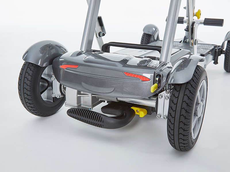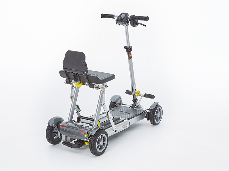 The mLite weighs just 17.9kg with its simple to remove battery removed and 19.9kg in total, making one of the lightest folding mobility scooters on the UK market. The easy to remove lithium battery pack weighs just 2kg and offers the option of both on or off board charging.