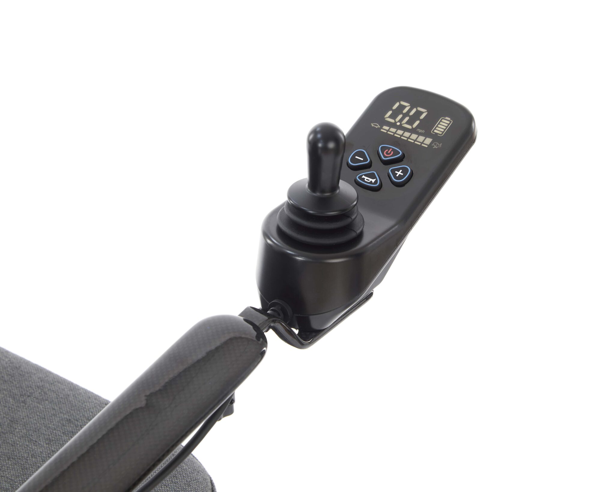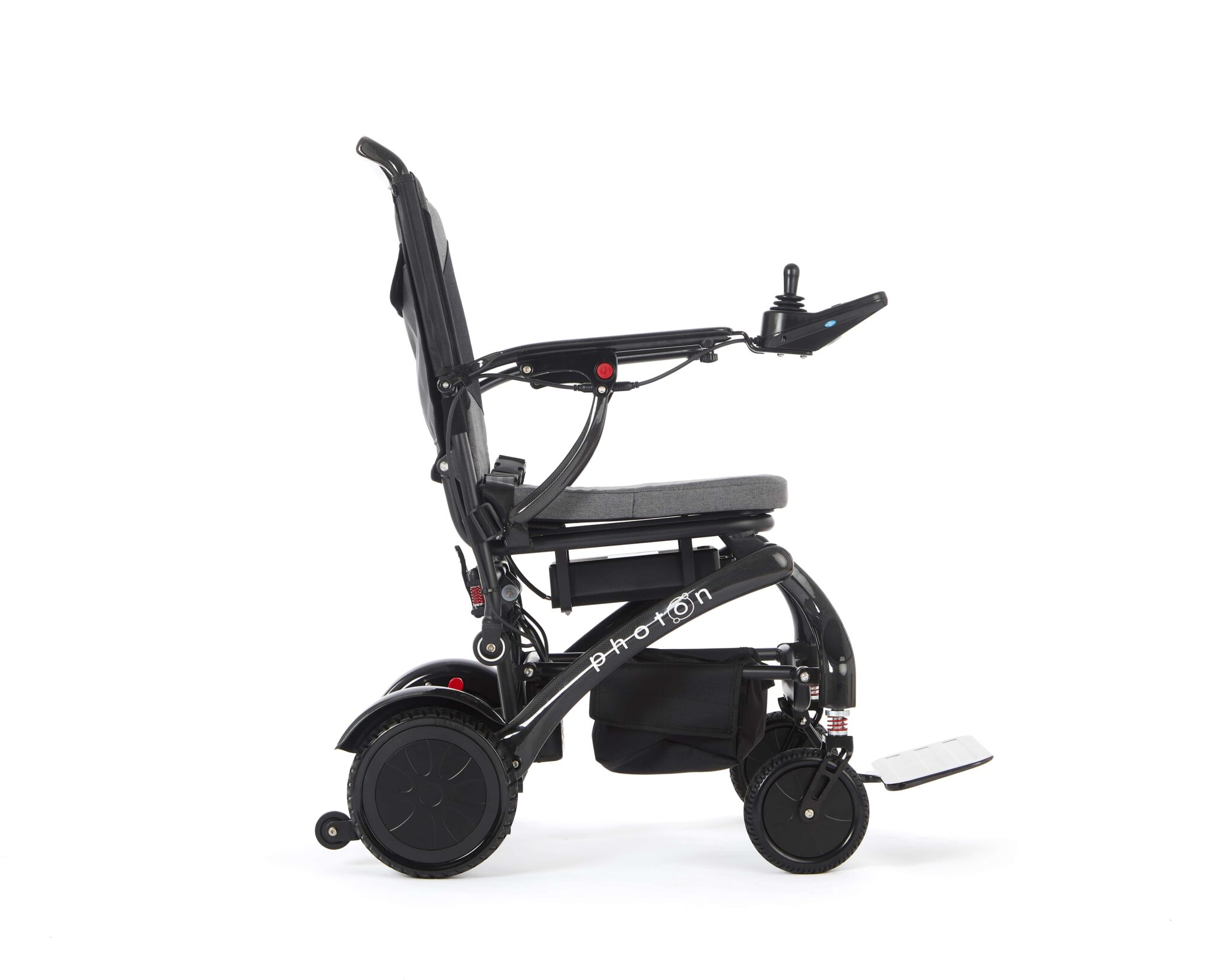 The DSL Photon Plus is the ultimate carbon fibre powerchair. The carbon fibre results in one of the lightest chairs on the market with a weight of just 17kg, this is including the battery. This enables the user to easily store and transport the powerchair, which is particularly useful on public transportation. The frames light weight as well as compact design additionally makes this chair ideal for use in crowds and narrower terrain.