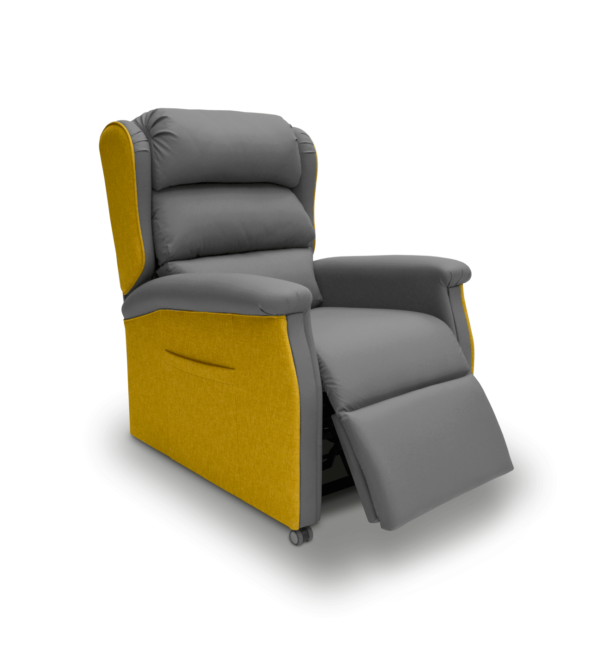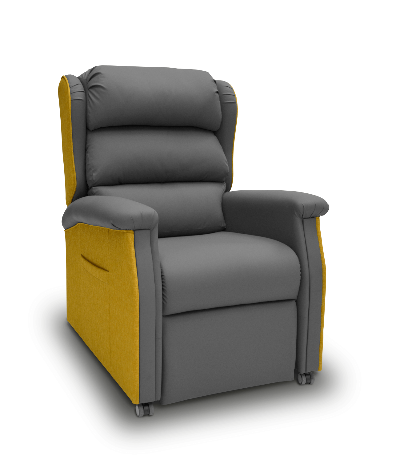 The DSL Symphony is a stylish and modern rise & recliner, designed to provide posture and pressure care. The chair features a Single Motor, Tilt-In-Space: This motion allows the back and feet of the chair to be adjusted in a single, synchronized motion, allowing the user to raise their feet above their hips without entering a fully reclined position. This wrap is removable, allowing adjustments to be made easily. Medium pressure care is provided with the Visco Foam inner, and the waterfall back can be adjusted to suit the user’s needs. The Symphony is available in a range of colours, and bespoke sizing options are available.