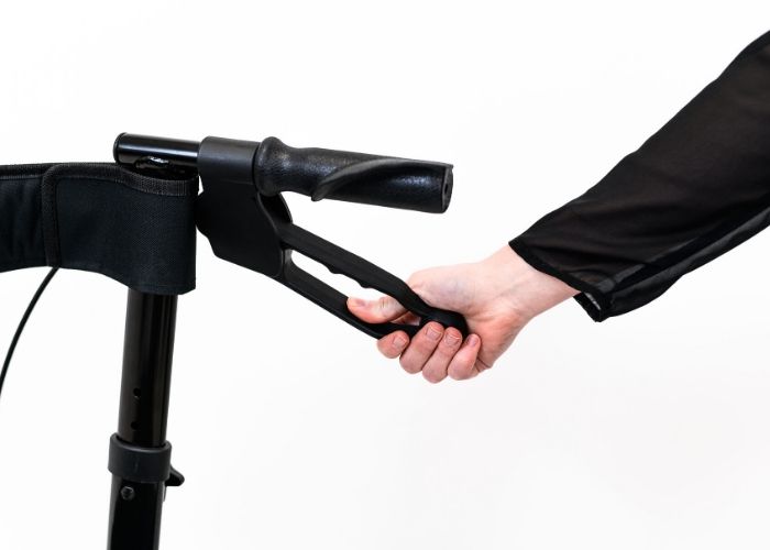 The Zoom Plus X-Country Rollator is incredibly light and easy to handle, this is due to its robust lightweight aluminium frame and easy folding mechanism meaning it is suitable for both outdoor and indoor use. The X-Country incorporates both a revolutionary easy squeeze braking system with extra large brake pads and the soft roll Eva tyre design with larger wheels than the Zoom Plus, which combined, offer superior traction on slippery surfaces, such as laminate flooring and ensures complete peace of mind and confidence for the user, when faced with challenging terrain or conditions. A wide and flexible backrest provides additional comfort and security whilst seated. The Zoom Plus X-Country has a stylish look and design and also comes with a large storage bag for transporting and storing items. The handle height is also simple to adjust, therefore giving the height you need to have a comfortable journey whatever your height.