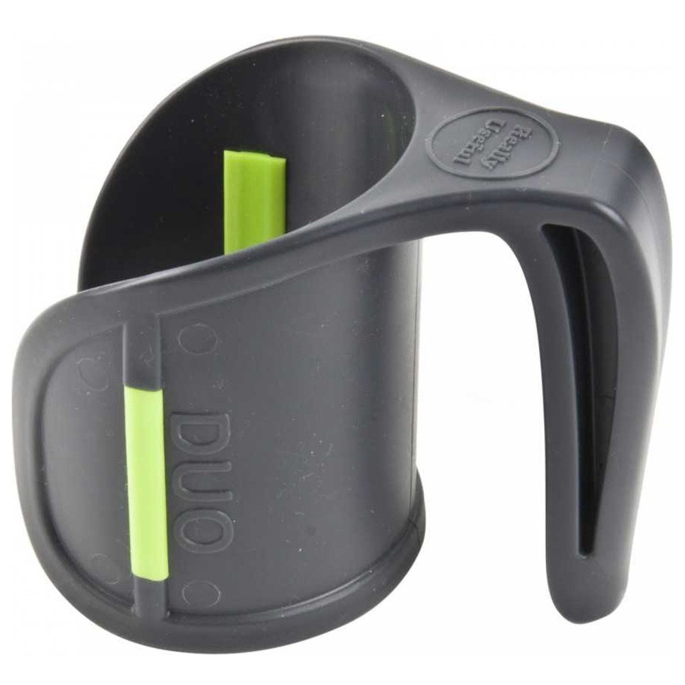 The DUO is an innovative ergonomic clip-on handle that allows you to hold a mug with both hands. Holding a mug with two hands increases grip and stability when drinking; DUO provides this benefit whilst also allowing you to use the same mugs as family and friends. DUO s wraparound style protects hands and fingers from hot mug surfaces, whilst its unique clip on design makes it easy to attach and detach without fuss. Please note that DUO is not intended to replace the original mug handle and you should lift your mug using both handles.