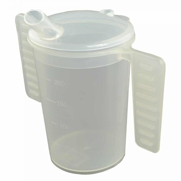 This 200ml feeding cups is accompanied with 2 spouted lids, one wide and one narrow, to accommodate different liquids and users. Dishwasher safe.