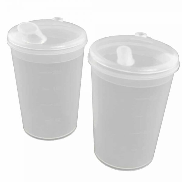 These feeding cups are accompanied with a spouted lid per cup. One spout is wide and the other is narrow. The cup holds 200ml of liquid and is dishwasher safe.