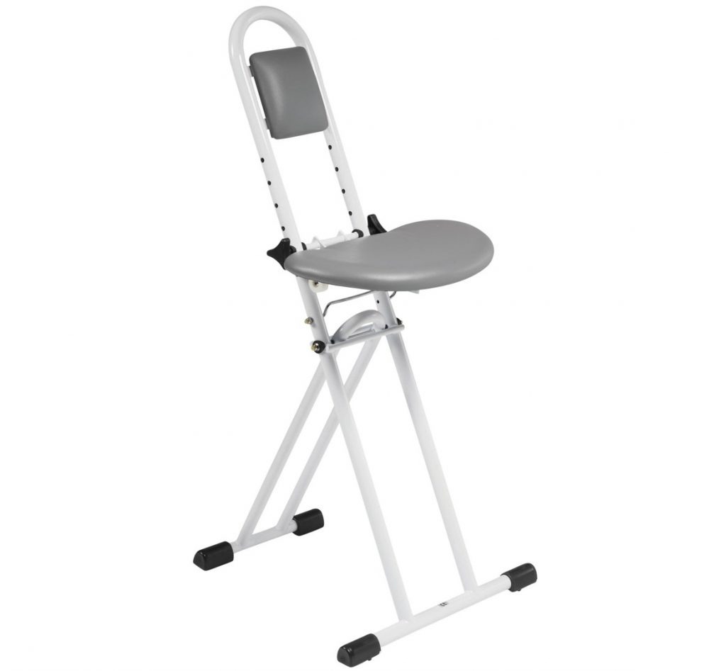 This product allows users to take the weight off their feet with this handy foldaway ironing / perching stool and is ideal for use in the kitchen, bathroom and around the house in general. The height can be adjusted between 21 to 28 inches (52cm – 71cm), providing a choice of sitting or standing positions.