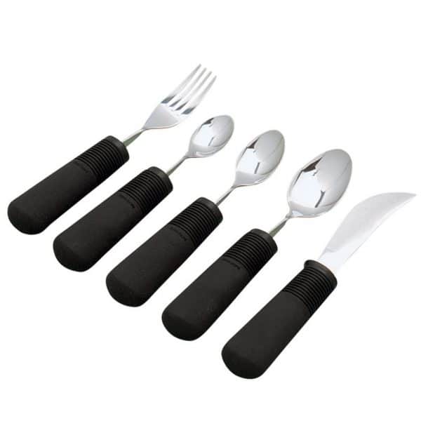 The Big Grip cutlery range have a soft cushioned grip that keeps the utensil in the hand – even when wet! The built up handles are made of soft latex – free material, with flexible ribbing that’s comfortable and adapts to any grip. They are ideal for those with poor grip, or limited finger or wrist mobility or limited strength.