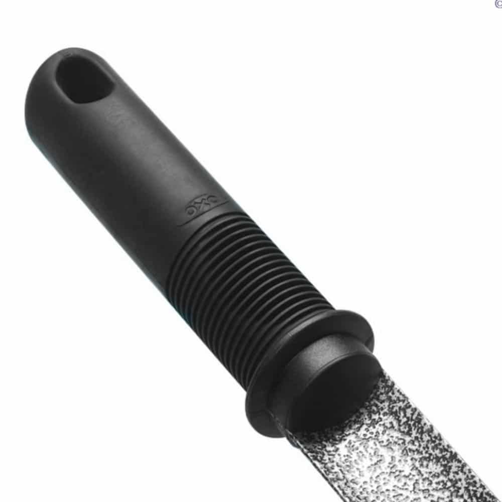The textured surface prevents the foot from sticking to the shoehorn, helping it slide easily into the shoe.
