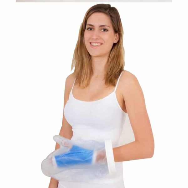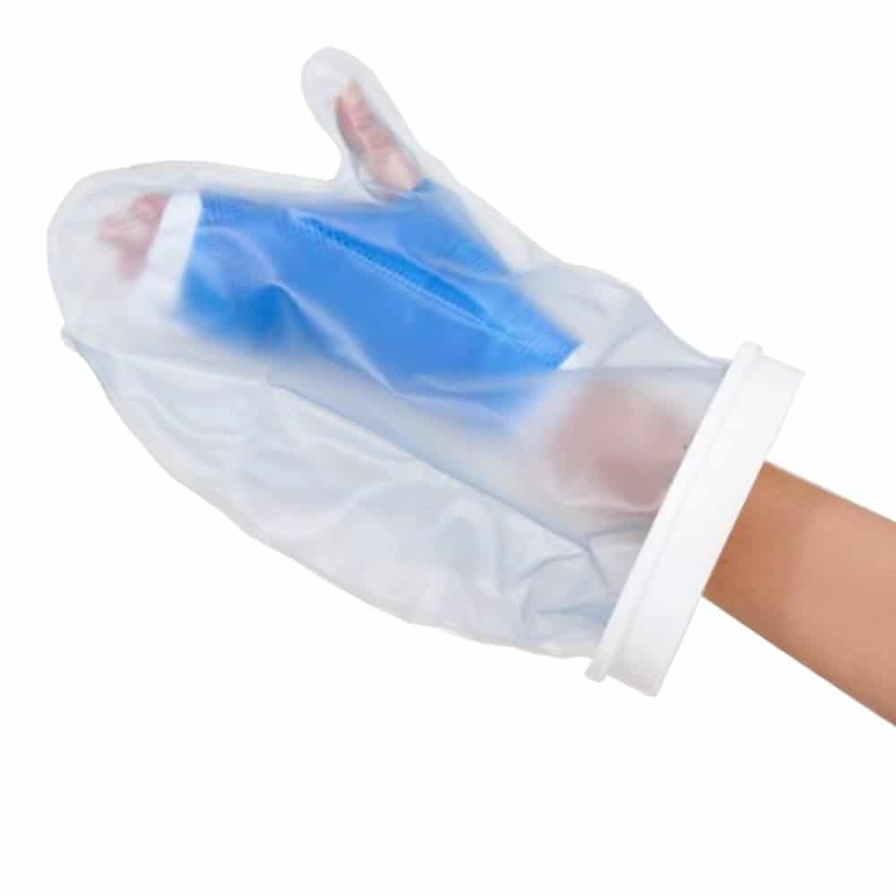 This comfortable waterproof protectors simply slip over the cast or dressing on the hand to protect them when taking a bath or shower. The cast protectors are re-usable and are intended for single patient use only. Not suitable for use with open or undressed wounds or when swimming.