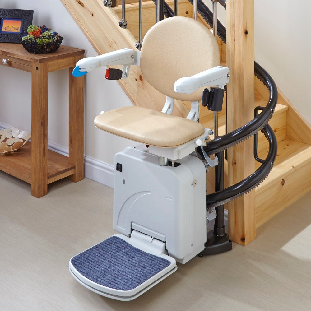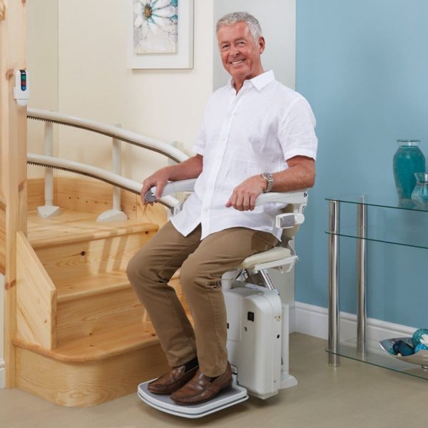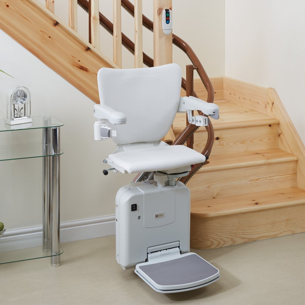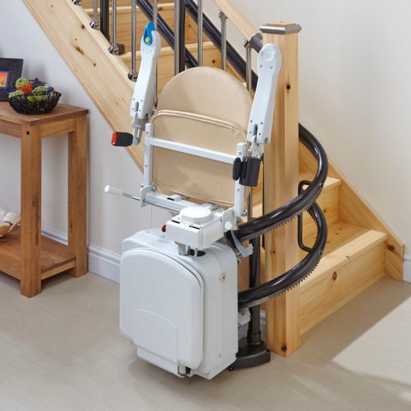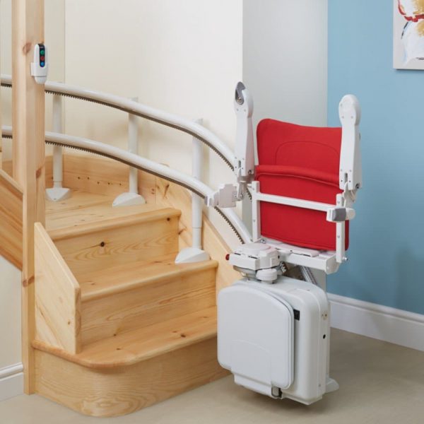 The Twin Rail Curved offers a choice of options compatible for a curved staircase: With a choice of two seat types, each with numerous options, the lift can be customised to suit the needs of most users with ease. The Handicare Twin Rail Curved is suitable for most curved staircases.