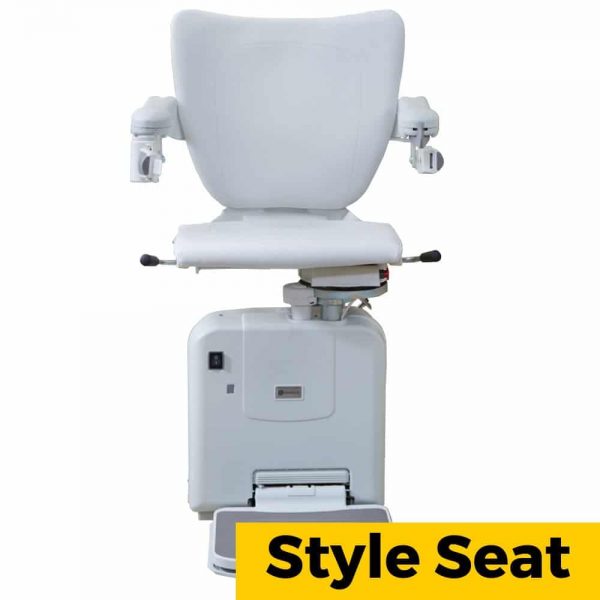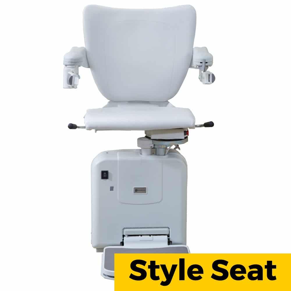 The Twin Rail Curved is available with Handicare’s fully upholstered “Style Seat”, covered with a comfortable yet stylish leather-look fabric, in a choice of 2 colours; (Vanilla Beige, or White Ivory), or with a material finish in 1 colour (Cherry Red).