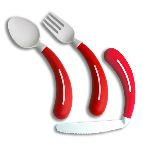This beautifully designed cutlery helps to eat a little easier. Each piece has a curved design to help bring the food to mouth. Available as a spoon, fork or knife, and also as a left or right hand version for the spoon and fork. Also available in two colours: Dark Grey and Red. The red version is particularly helpful for people with low vision and may help with those that suffer with dementia. They are microwave safe.