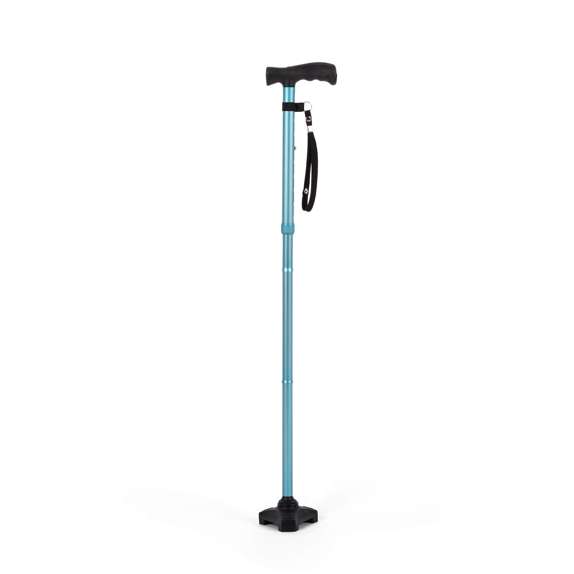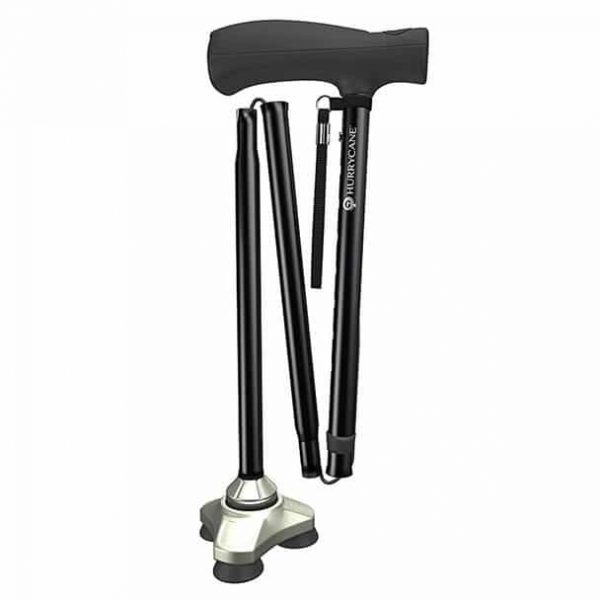 The HurryCane has a freestanding design meaning the cane can aid users when moving from a sitting to a standing position. Its unique pivoting base also simulates walking motion. Most importantly providing stability at any angle and enabling the cane to tackle any terrain. With its 8 postion height adjustment the HurryCane will suit everyone. Easily folded and comes with a wrist strap and a travel bag.