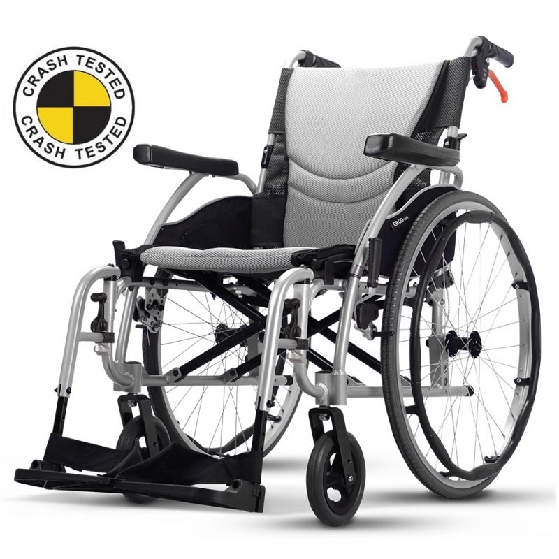 Most importantly, this wheelchair is crash tested. Meaning it can be used in specially adapted vehicles, without the user having to transfer into a regular car seat.