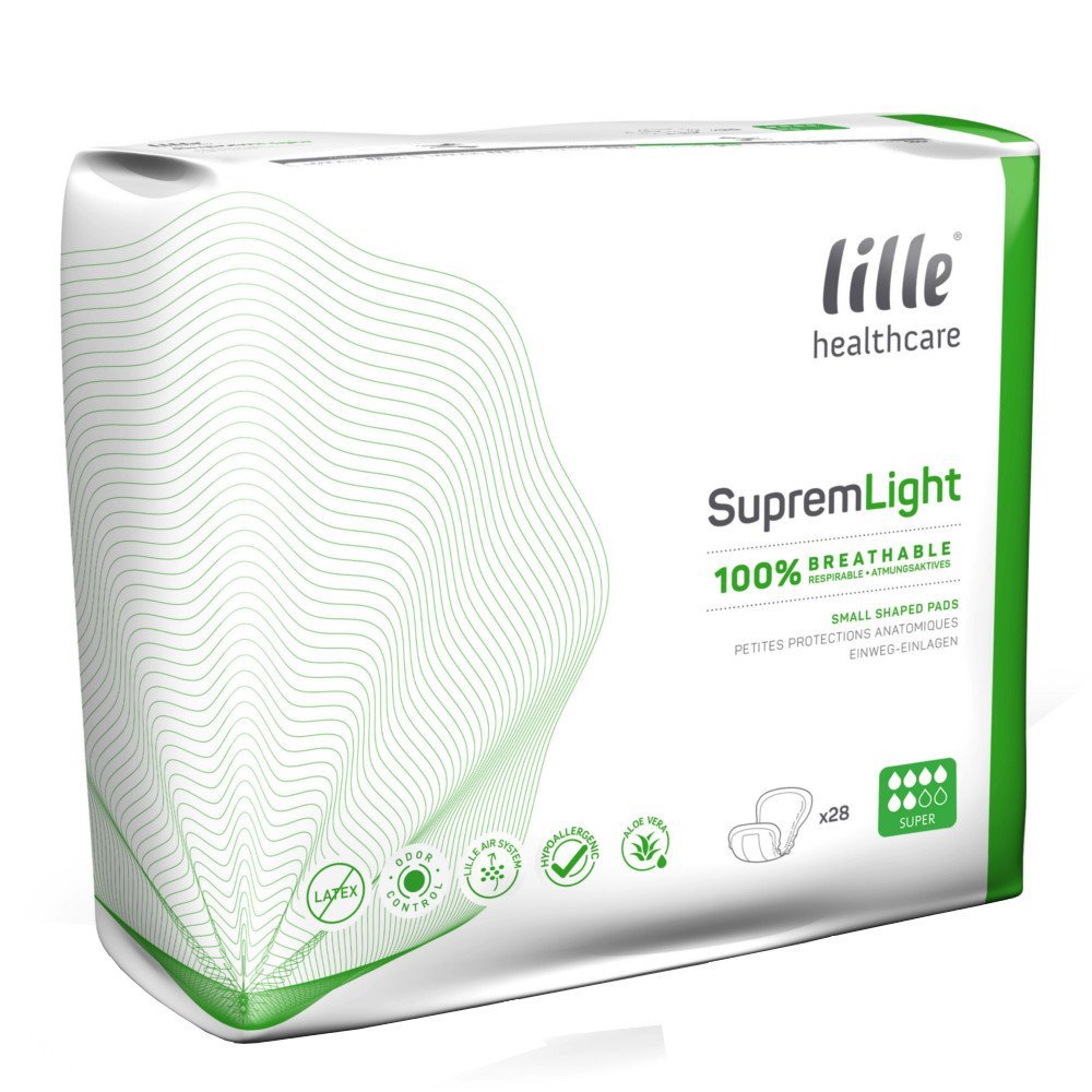 Lille Suprem Light is a range of products for managing light to moderate incontinence. They are designed for the small urinary losses caused by bladder weaknesses. The Suprem light has an anatomic shape for a better fitting and more comfort, whilst remaining discrete. A peel off strip helps to keep the pad in place, greatly reducing the risk of leakage and the super absorbent polymer provides a faster absorption and helps to keep the user dryer, longer. A new generation super absorbent polymer maximises the absorbency level and neutralises odours. The acquisition layer improves the rate of absorption, greatly reducing the risk of leakage and any potential feeling of wetness. To maximise skin integrity the Lille Suprem light are breathable and hypo-allergenic.