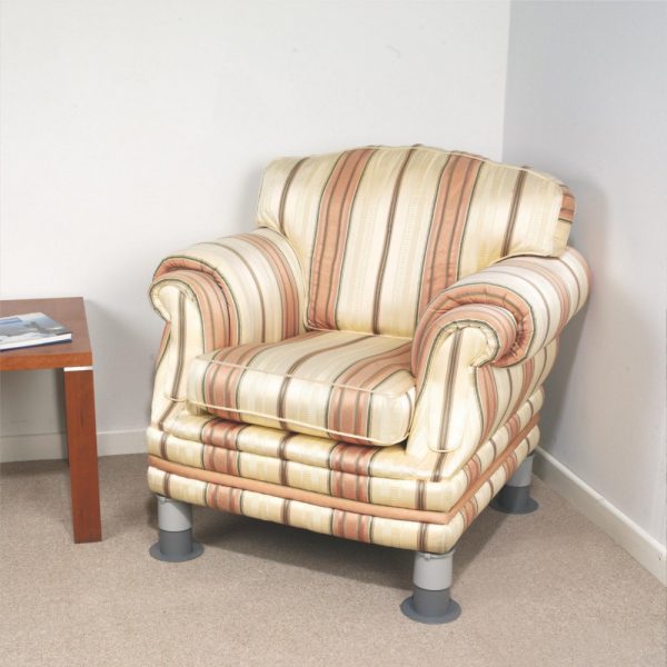 These unique secured raisers enable a variety of furniture to be raised at the heights required for the user. The raisers are easily fitted to a wide range of beds and chairs. Armchairs and beds with castors can be raised from 4 to 7 Inches.