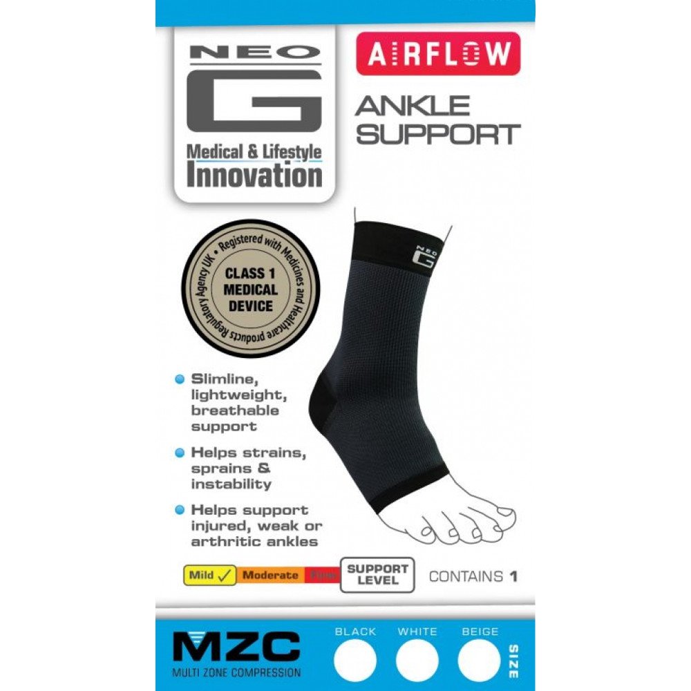 The Neo-G Airflow Ankle Support with Multi Zone Compression provides a snug, yet flexible fit, helping warm muscles and support the ankle during sporting and occupational activities. The specialist breathable fabric helps control moisture during intense activities whilst providing support during movement. The slimline, snug and dynamic design means it can easily be worn under everyday clothes at work, home or on the field for comfort, support and reassurance when you need it most.
