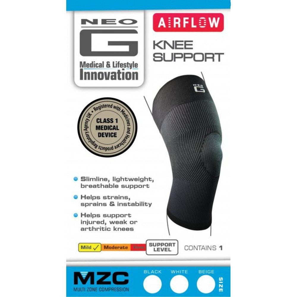 The Neo-G Airflow Knee Support with Multi Zone Compression provides a snug, yet flexible fit, helping warm muscles and support the knee during sporting and occupational activities. The specialist breathable fabric helps control moisture during intense activities whilst providing support during movement and the silicone top band feature is great a helping reduce slipping whilst on the move. The slimline, snug and dynamic design means it can easily be worn under everyday clothes at work, home or on the field for comfort, support and reassurance when you need it most.