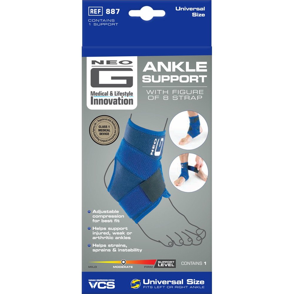 The Neo-G VCS® ankle support has been designed to provide basic ankle protection, support and compression. It is suitable for sprains and strains as well as arthritic and ligament pain or other inversion / eversion injuries.