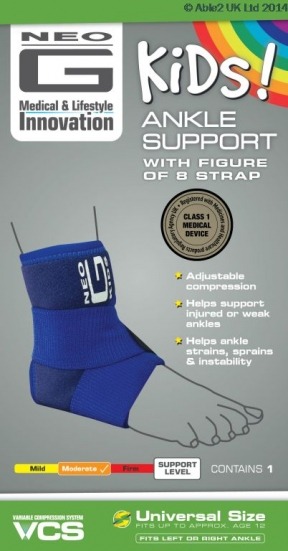 The Neo G Kids Ankle Support with Figure of 8 Strap is specifically designed for the younger wearer and helps provide dynamic support around the ankle complex. The adjustable figure of 8 strap helps provide added support and compression during sporting and recreational activities. The support helps to reduce excessive planterflexion as well as inversion and eversion of the ankle all of which are associated with ligamentous injuries and instability of the ankle. The durable, heat therapeutic neoprene helps warm muscles and joints, helping with arthritic ankles and chronic aches and stiffness.