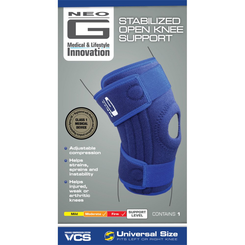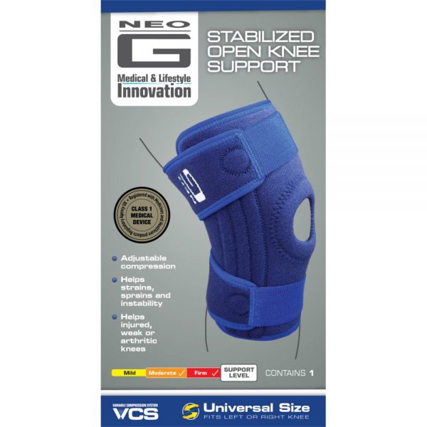 The Neo-G VCS® stabilising knee support offers a high level of support. It features spiral stays which provide stability around the knee and a high level of support without restricting movement. It also features adjustable fastening to provide greater comfort, fit and protection whilst the open patella helps tracking. Particularly suitable for skiing, running, golf, hockey.