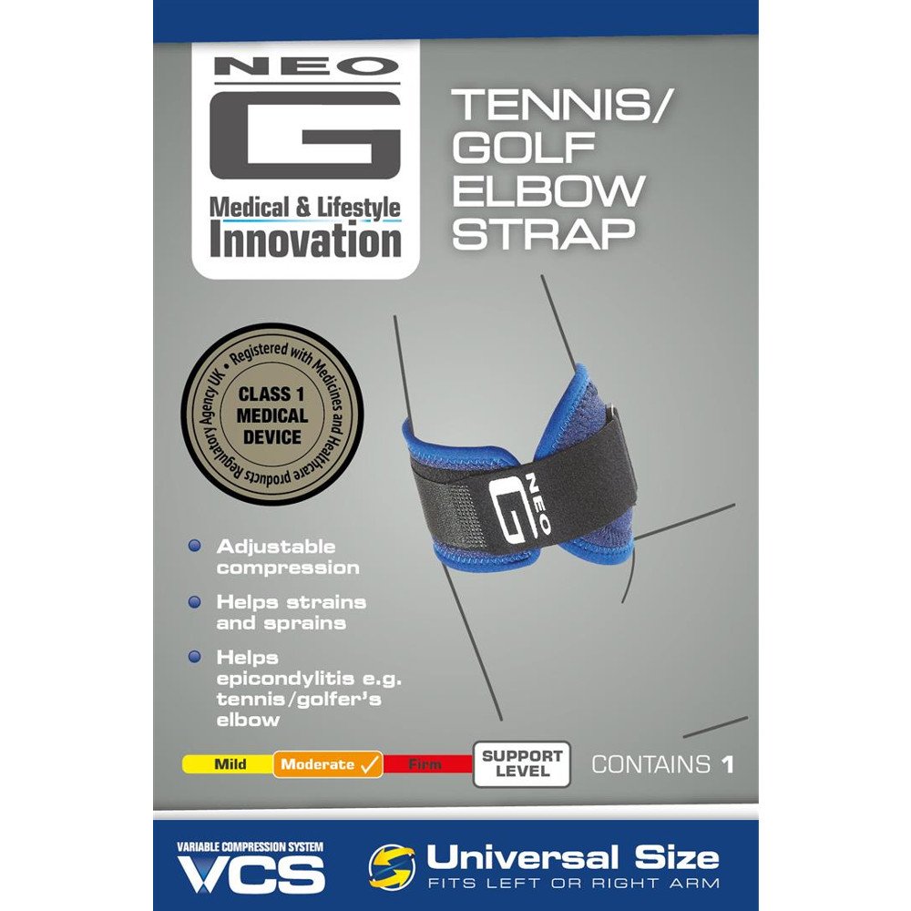 The Neo-G VCS® tennis elbow strap helps to reduce pressure on the tendon complex at the elbow during repeated movements. It is ideal for tennis players and golfers. It has a unique lightweight design and comfortable unrestricting fit. It also provides rapid pain relief and compression to speed up the rehabilitation process.