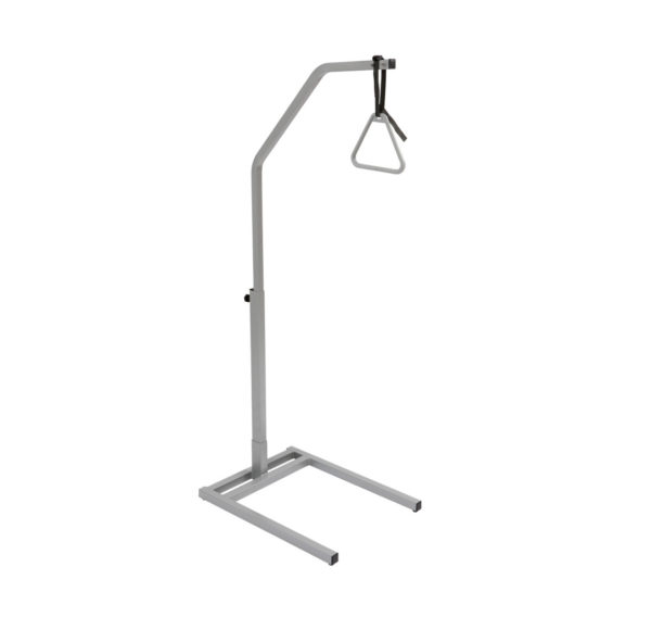 This free standing Patient Helper is placed under the bed base to give a stable overhead support pole for those who find it difficult to rise out of bed. Designed for raising a person to a sitting position, not lifting the entire weight of the person off the bed. The moulded plastic handgrip can be adjusted in height. Disassembles into three pieces for ease of storage and transportation. Minimum required clearance 1¾ inches (45mm). Overall height 76 inches (1930mm). Overall width 37 inches (940mm). Overall depth 24 inches (610mm).
