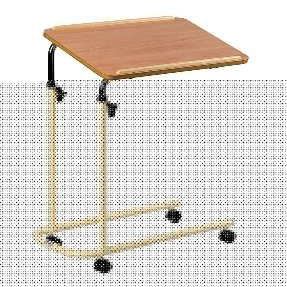 The overbed table has a laminated teak top and two independent points for adjusting the height, which allows the top to be angled. Rails on the sides of the table top prevent items from slipping off. The four castors allow the table to easy glide to and from the bed or chair, ideal for those with limited strength and mobility.