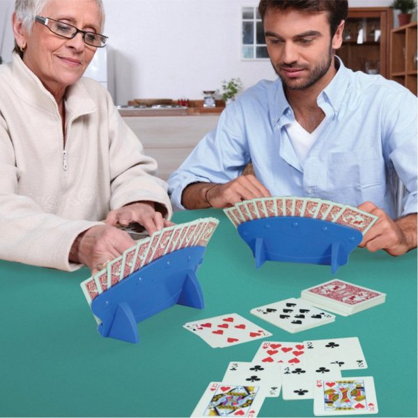 This pair of Playing Card Holders is the ideal, hands-free games set and will hold up to 15 standard playing cards each. It can be placed on the table or held in the hand and both holds and organises cards for easier play. Ideally-sized for Poker and Bridge playing cards, you can easily slide cards in and out of the holder and rest the non-scratch feet on a table for hands-free play.