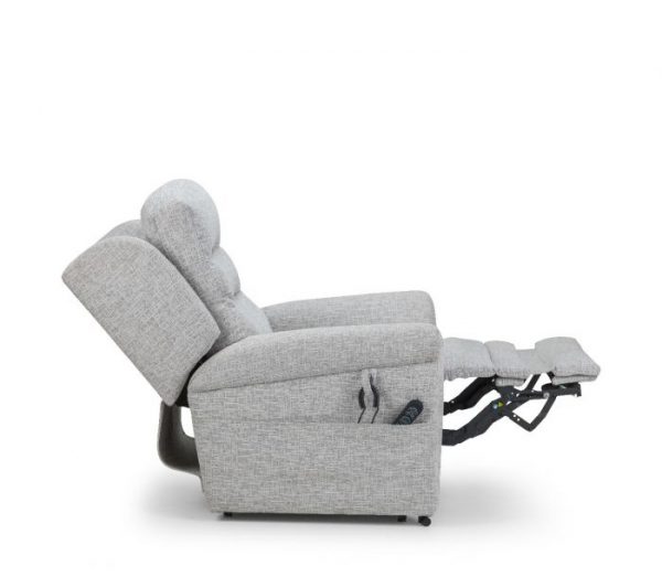 The Pride Buxton Standard brings some modern sleek styling and outstanding comfort to our Rise & Recliner range with its generously filled letterbox back and chaise allows for superb comfort and relaxation. It is has a dual motor that allows the back and feet of the chair to be adjusted independently of one another, in two separate motions, allowing the user to choose from a much wider range of positions. This chair also comes with many added features, handy USB charger port on the handset, extendable footrest, powered lumbar support and the revolutionary industry first powered headrest. The powered headrest gently positions and adjusts to a number of different positions with ease, reducing neck and shoulder strain.