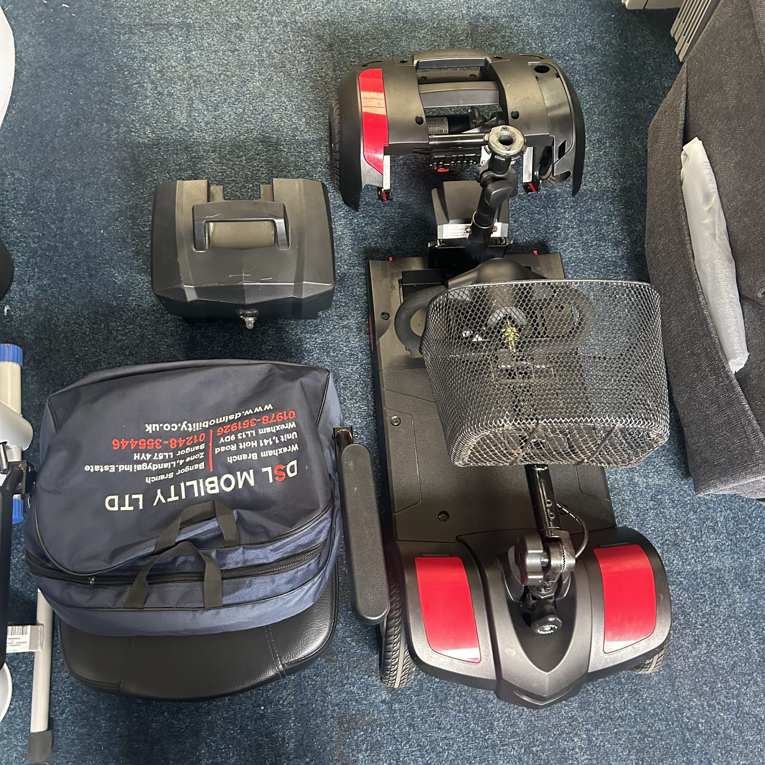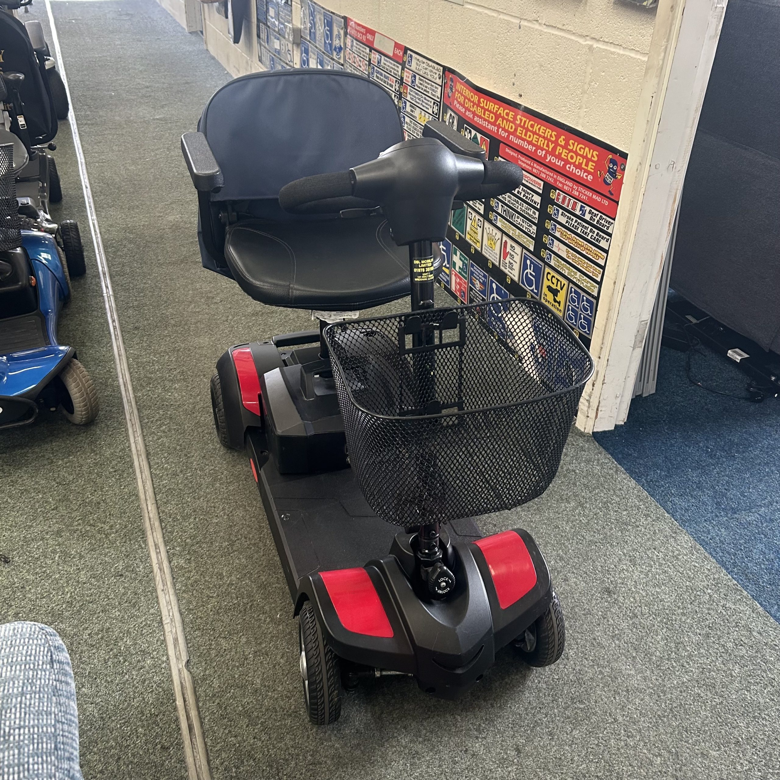 This particular scooter has been fully cleaned, serviced and tested by our Workshop Team, ensuring that it is in its best possible condition. Its batteries have been tested and earned a very high pass, and it is supplied with a DSL seat bag. It is red and black in colour and features only some light cosmetic damage (scratches, etc). The scooter is guaranteed for 3 months from the date of purchase.