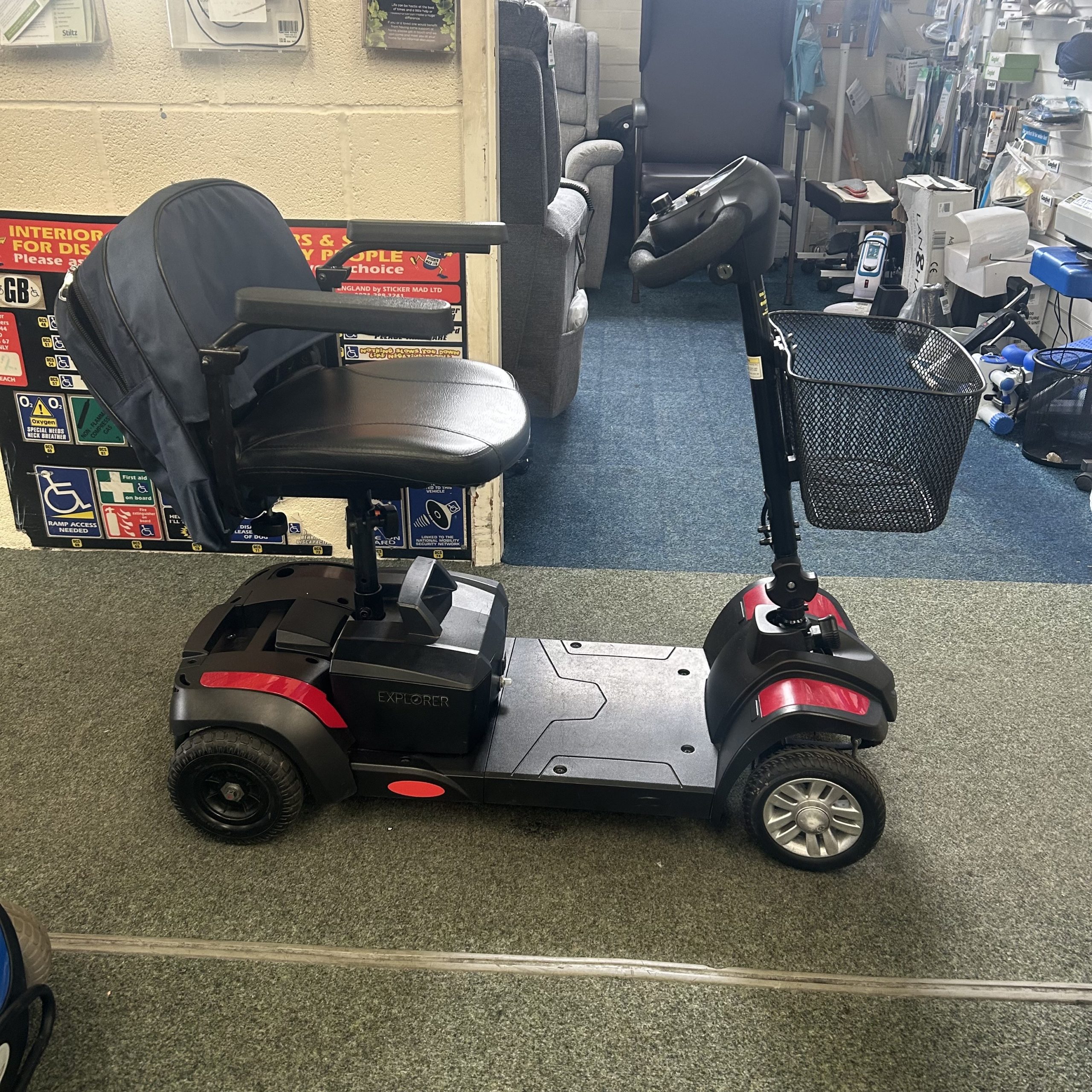 This Drive Phoenix is a reconditioned 4mph carboot scooter. The Phoenix has been developed to ensure a focus on Comfort, Style, Performance and Reliability. It is fitted with a pair of 22Ah batteries, allowing it to travel up to 16 miles on a single charge (based on a new model). The scooter has a maximum user weight capacity of 20 stone.