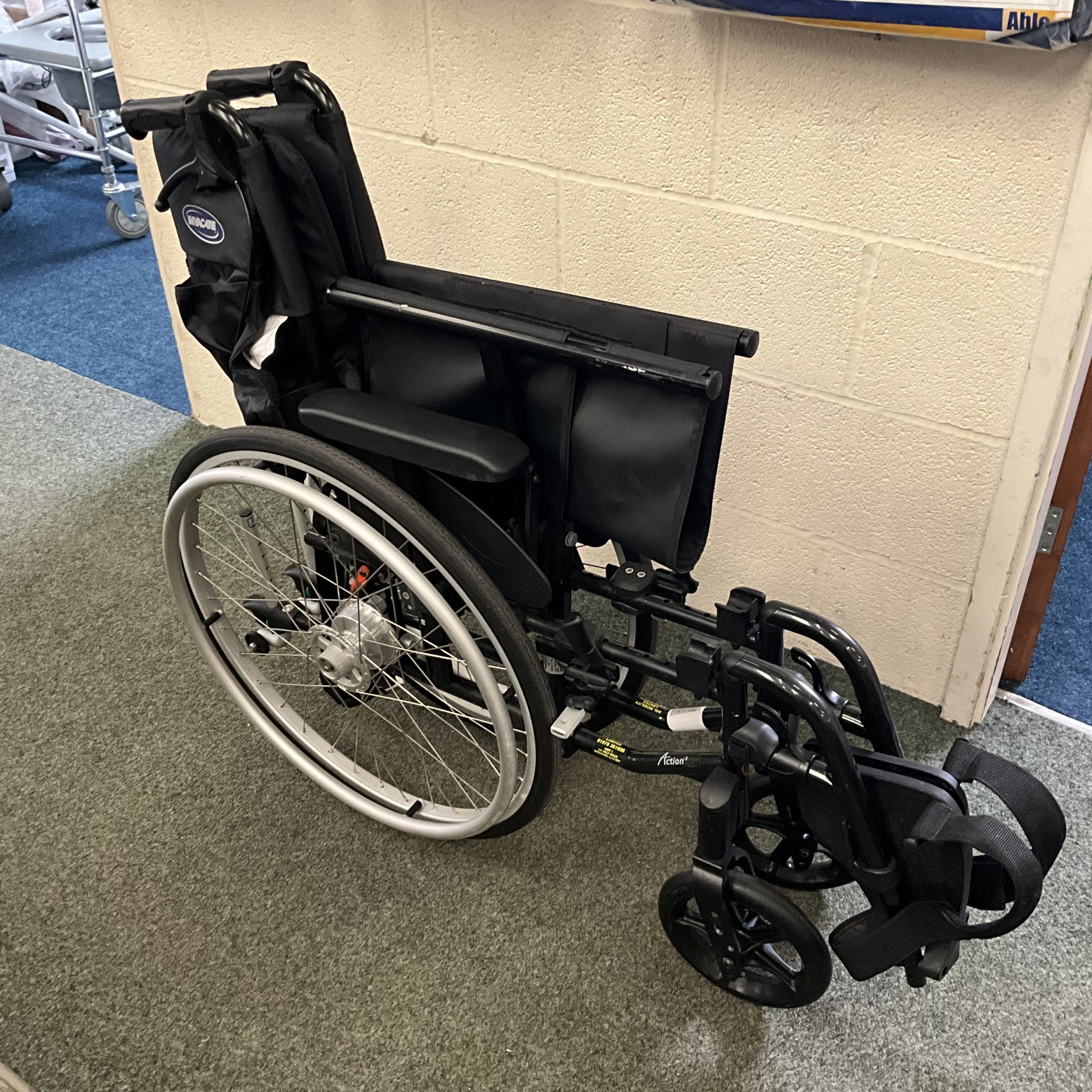 This Invacare Action 3 NG wheelchair is a reconditioned, self propelled wheelchair. This wheelchair has been crash tested designed to be used as a secure seat in a suitable vehicle, holding the user securely with a lap belt.
