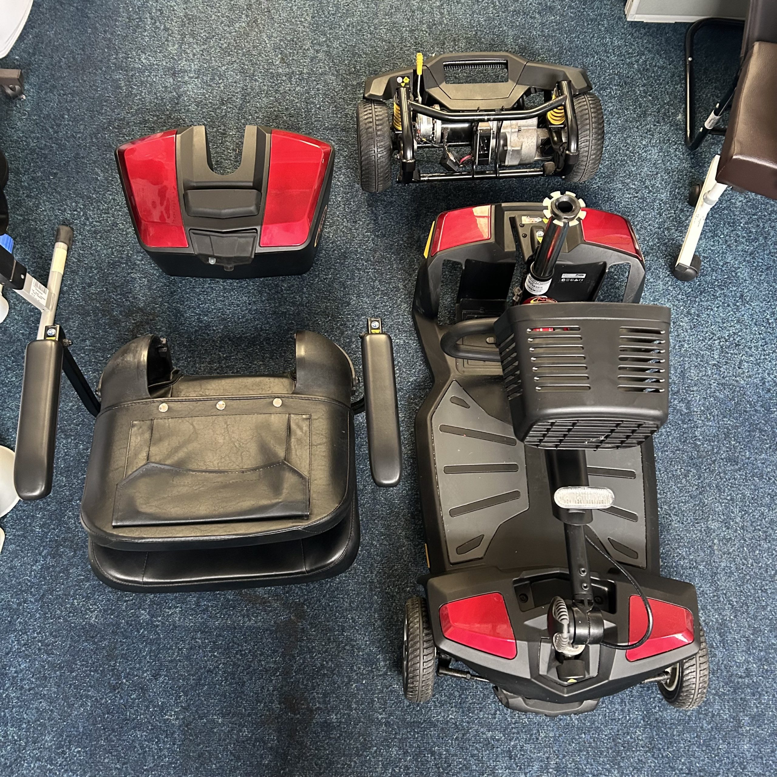 This particular scooter has been fully cleaned, serviced and tested by our Workshop Team, ensuring that it is in its best possible condition. Its batteries have been tested and earned a very high pass, and it is supplied with a DSL seat bag. It is red and black in colour and features only some light cosmetic damage, split in the front of the seat (scratches, etc). The scooter is guaranteed for 3 months from the date of purchase.