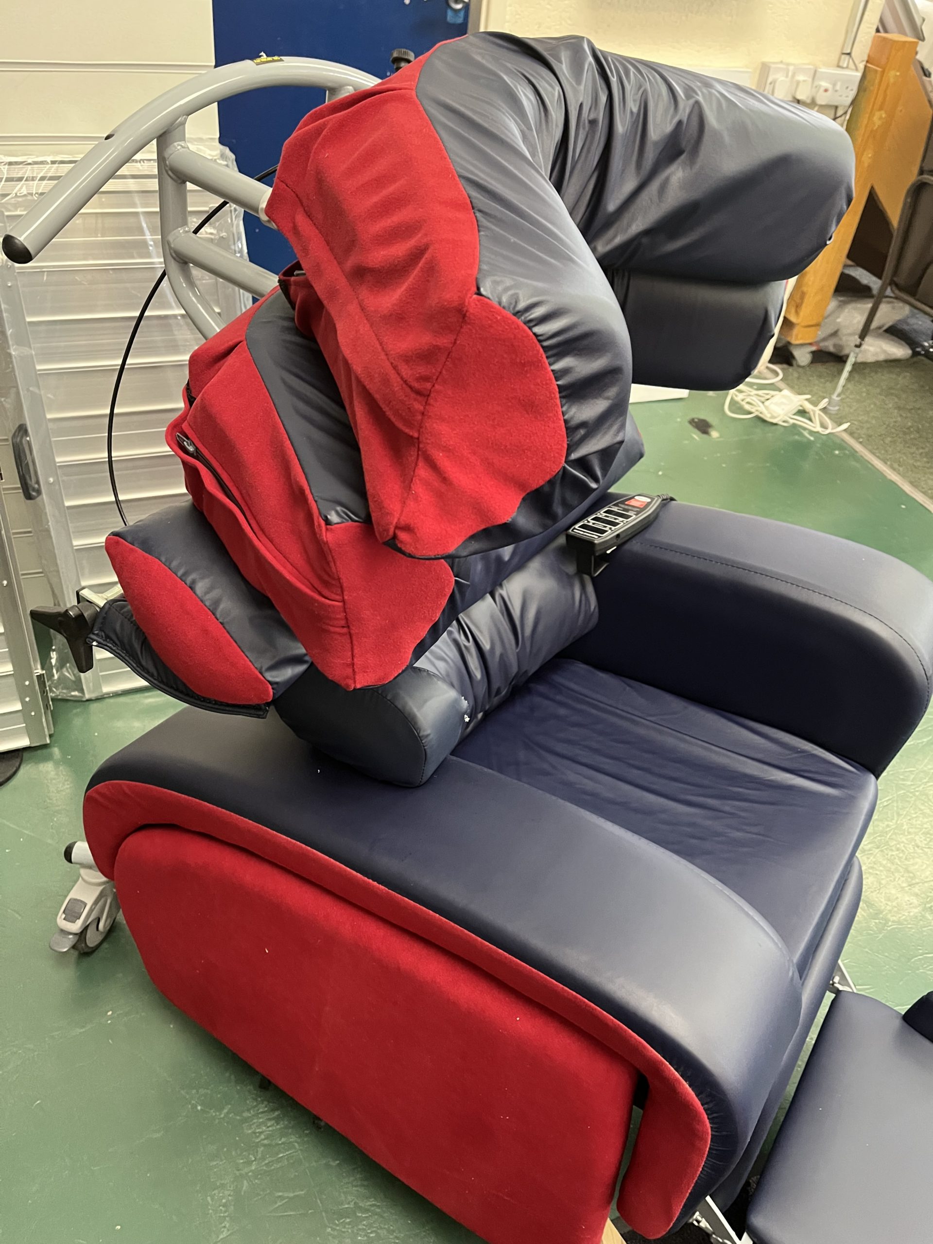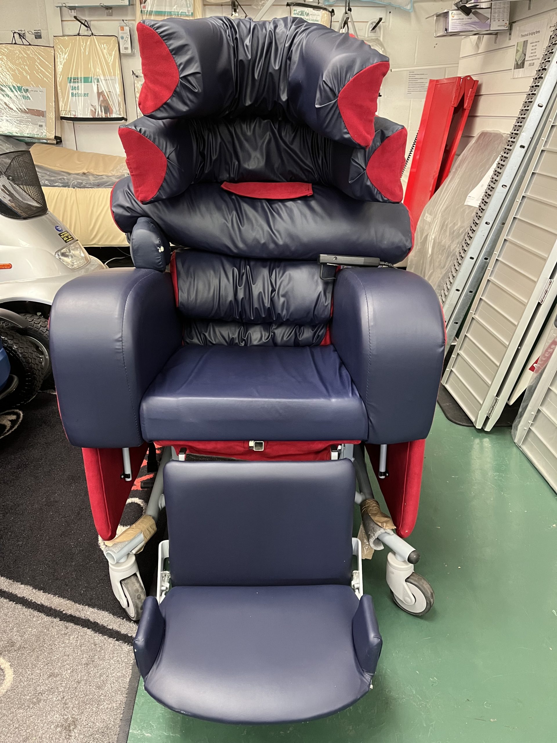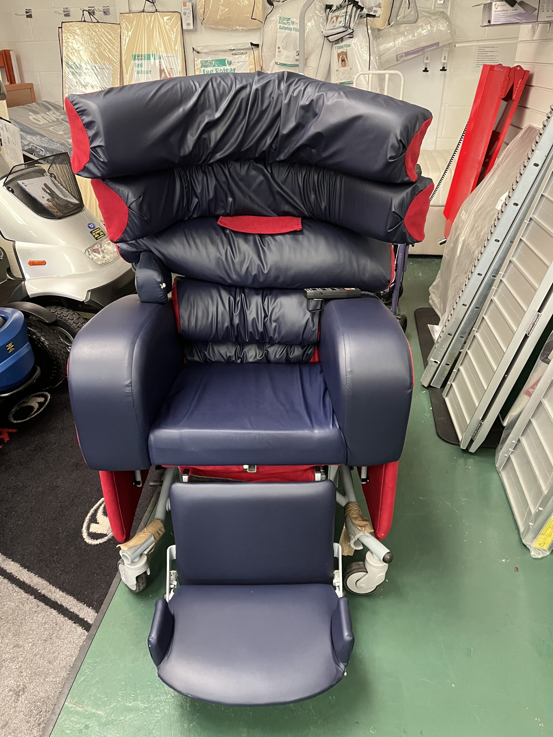 This particular chair has been fully cleaned, serviced and tested by our Workshop Team, ensuring that it is in its best possible condition. It features some slight cosmetic damage, including damage to the footrest and right lateral fabric. This chair is guaranteed for 6 months from date of purchase.