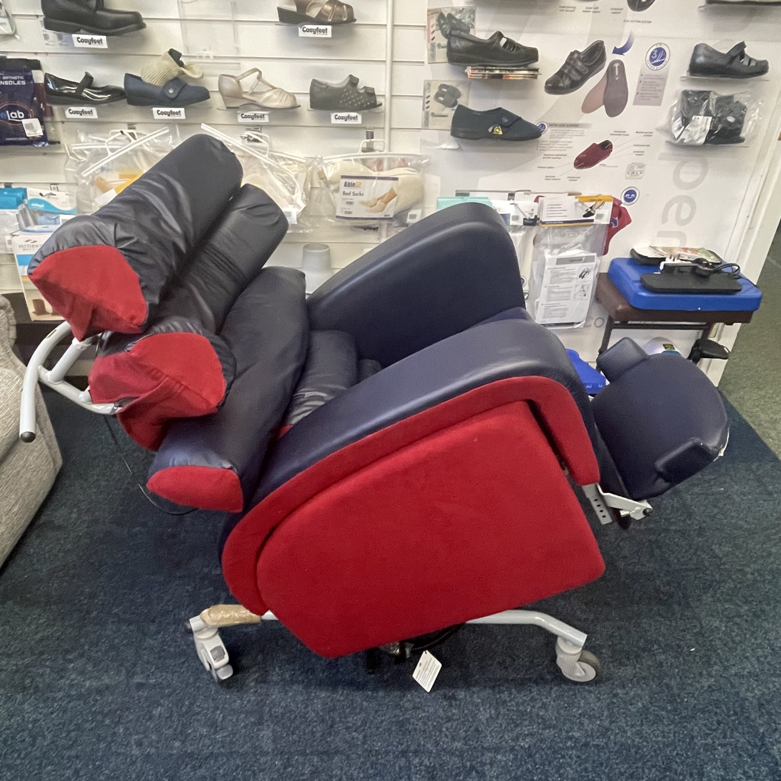 | Condition: Reconditioned | Seat Height: 20-25 Inches | Colour: Red / Navy |
