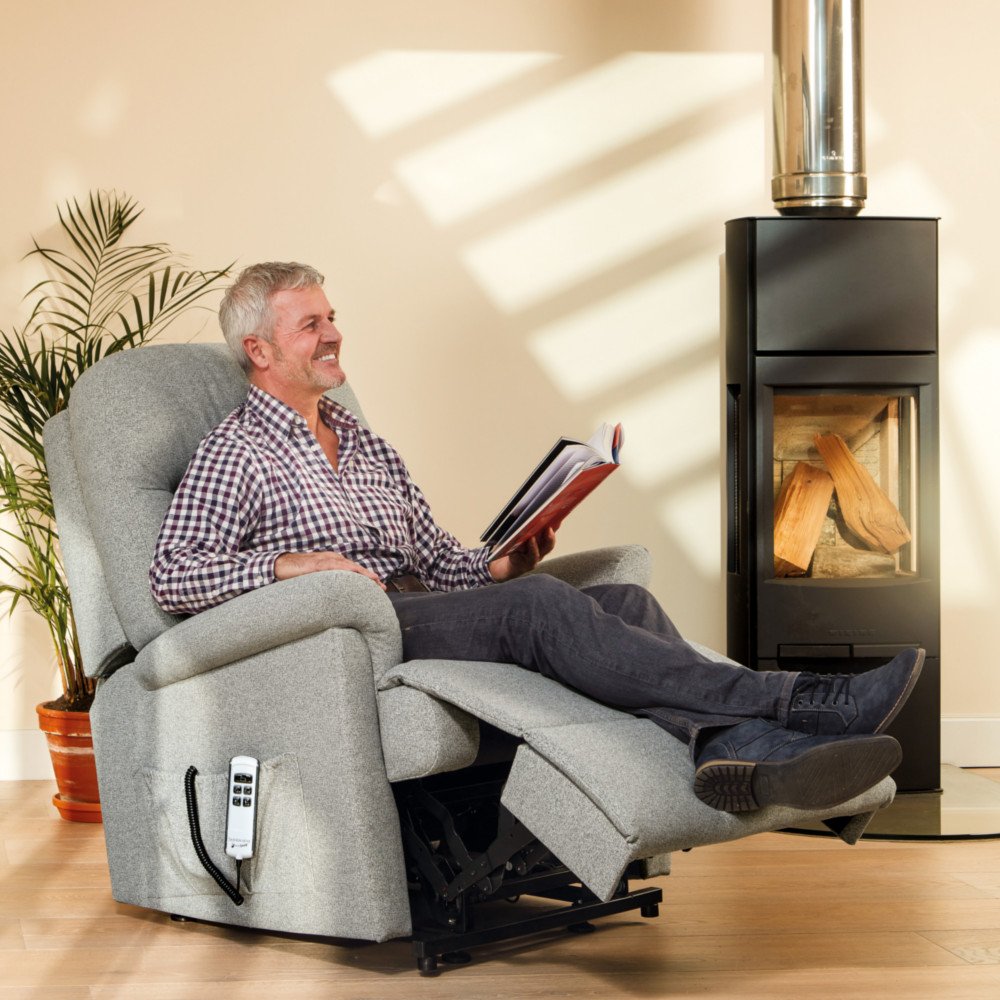 The DSL Keswick brings some contemporary styling to our Rise & Recliner range; thickly padded arms are complemented by, ‘chaise’ seating and a welcoming fibre-filled back cushion. It is available in a choice of four sizes, and with two different ‘rise and recline’ motions to suit the needs of most users.