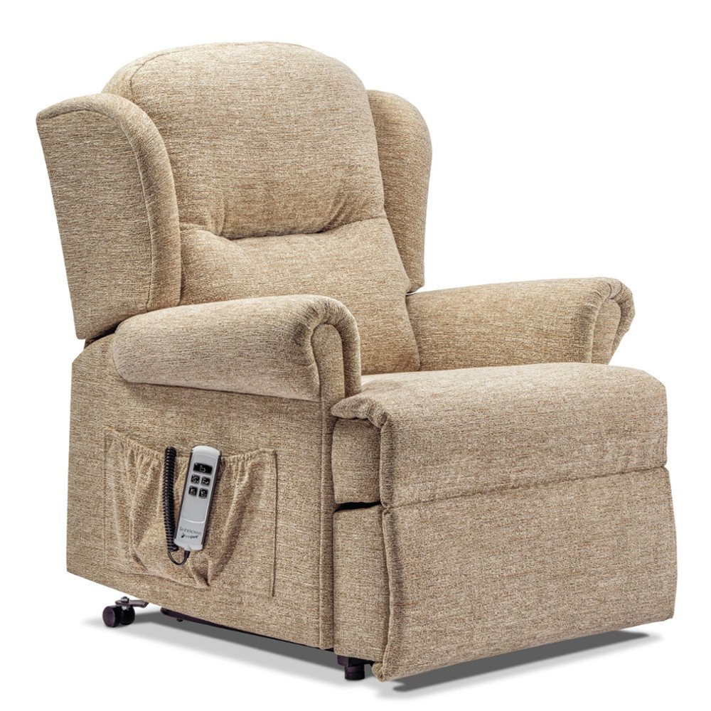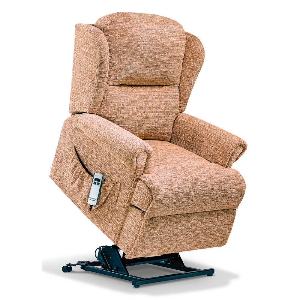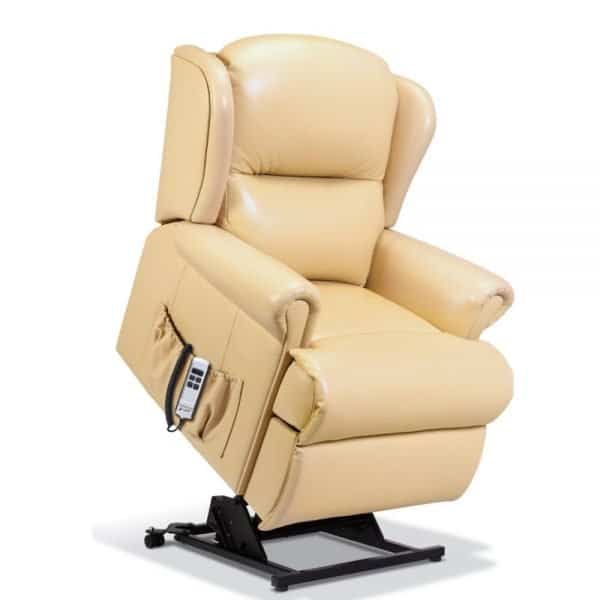 The DSL Menai provides a modern take on our Rise & Recliner range; thickly padded arms are complemented by, ‘chaise’ seating and a welcoming fibre-filled back cushion. It is available in a choice of four sizes, and with two different ‘rise and recline’ motions to suit the needs of most users.