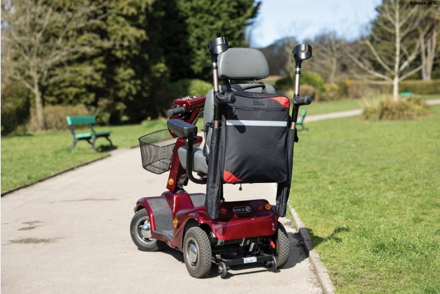 Easy to fit, the bag slides neatly over the back of a wheelchair or scooter with adjustable straps to securely hold it in place