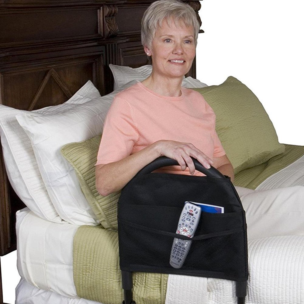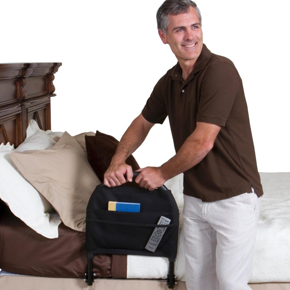 Weighing only 3 kg, the Stander Advantage Traveller is the most portable bed rail on the market! It requires no assembly and folds for travel, even fitting in a suitcase. Features a cushioned foam grip that is easy to sanitize. The rail is 17″ wide and 22″ high to accommodate thicker pillow top mattresses. Attaches to any size home or hospital bed frame with included safety strap. Includes 4-pocket Bed Rail organizer for keeping handy items close by. Perfect for keeping you from falling out of bed while you’re travelling.