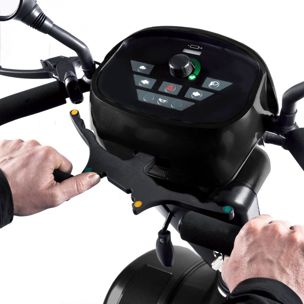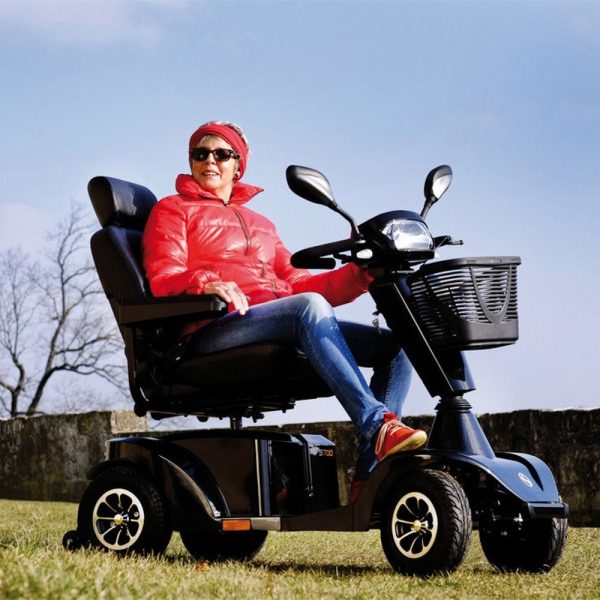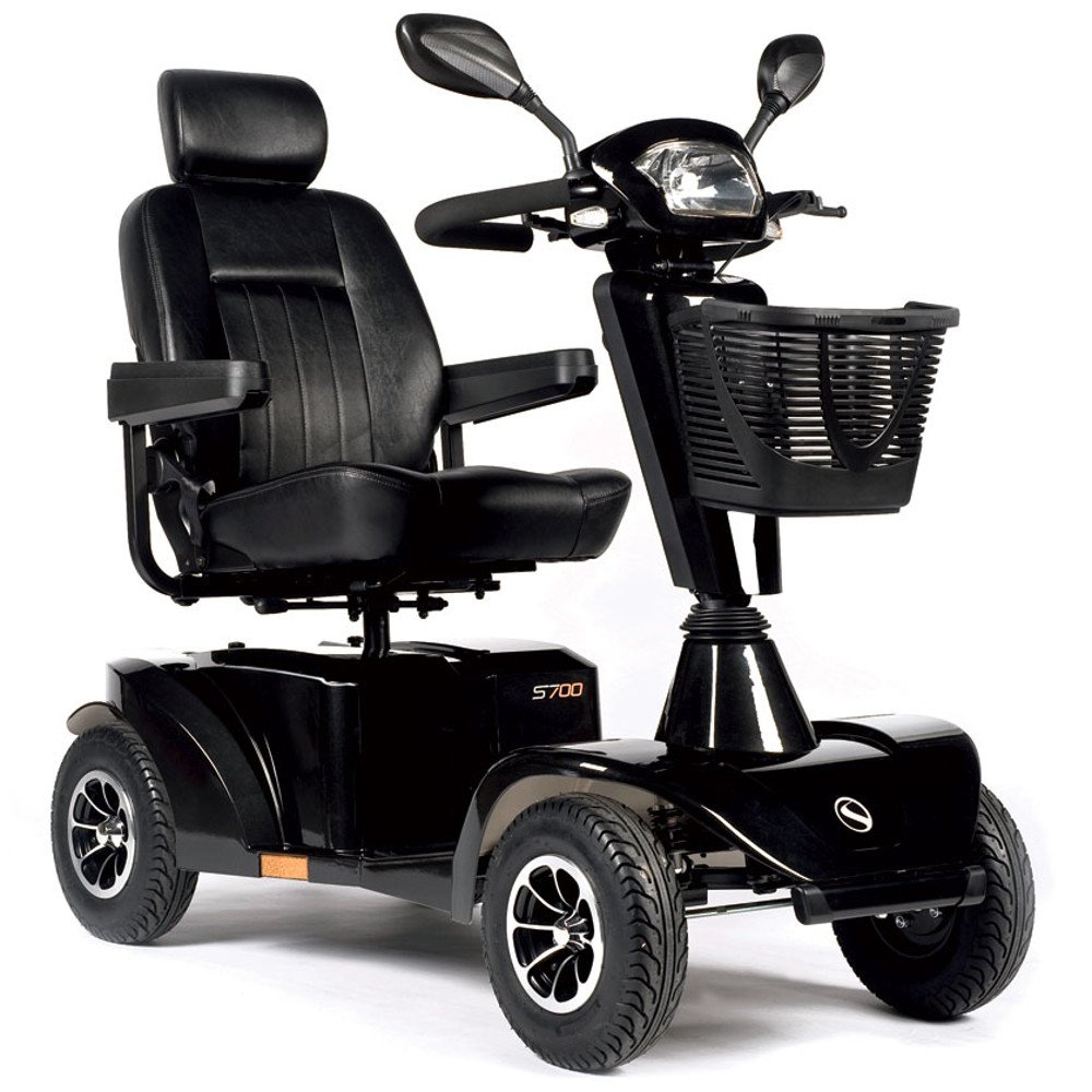 The S700 is the leader of the pack with superior outdoor performance features. Tackle greater gradients of 10 degrees, higher kerbs of up to 100mm and greater obstacles with larger 33cm tyres – it’s truly a mobility scooter designed for those who just can’t sit still. There’s no need to worry about distance either as the large 75Ah battery size will power an extended range of up to 55km and a lively top speed of 8mph. You’re also assured of a smooth, rewarding drive each and every time with the advanced 4-wheel suspension (as standard) supporting a maximum user weight of up to 160kg. Plus with a black metallic colour finish, the S700 will always get the attention it deserves.