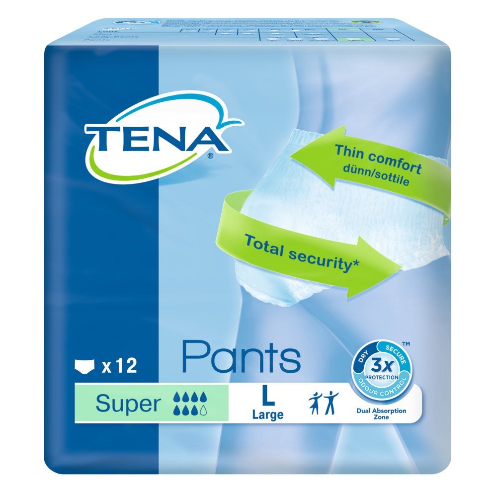 | Brand: TENA | Absorbency: 1700mls – 2100mls | Pack Size: 12 Pants |