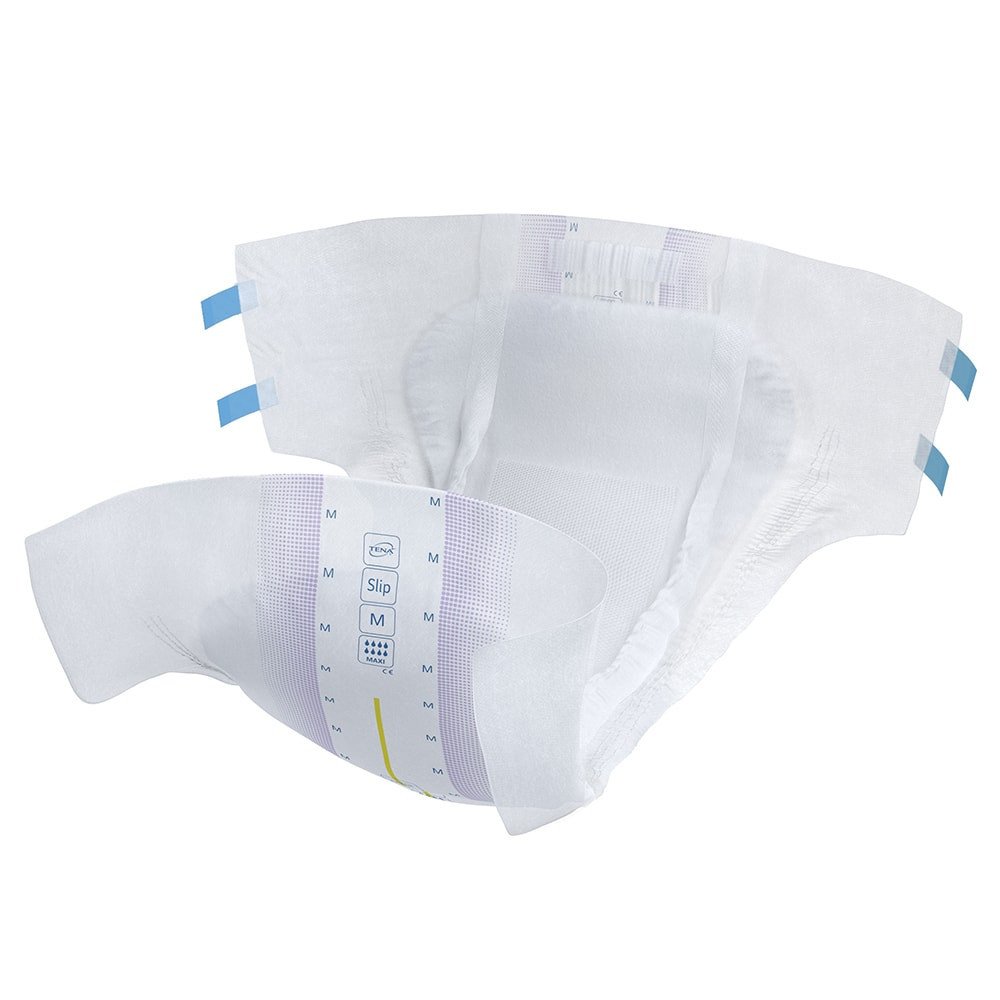They are designed with a new breathable back-sheet and breathable non-woven sides maintain dryness for healthy skin. The new textile-like material feels gentle and more comfortable on the skin and the fast-acting, highly absorbent core securely protects against leakage. Dermatologically tested, the Tena Slip has new wide hook tapes for easy fastening and multiple adjustments.
