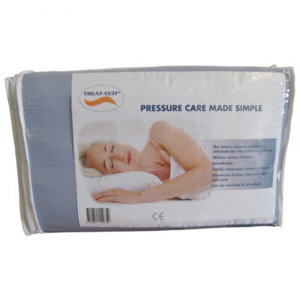 The new, simple and cost effective way to treat patients susceptible to bedsores. Offering 24 hour protection from bed to chair using the same Treat-Eezi pad. The thousands of polyester fibres in each layer of the Treat-Eezi pad combine to conform to the natural body contours in both supine and seated positions thereby offering pressure relief well below that of normal capillary blood flow hence skin breakdown and shearing, plus friction are simply diminished.