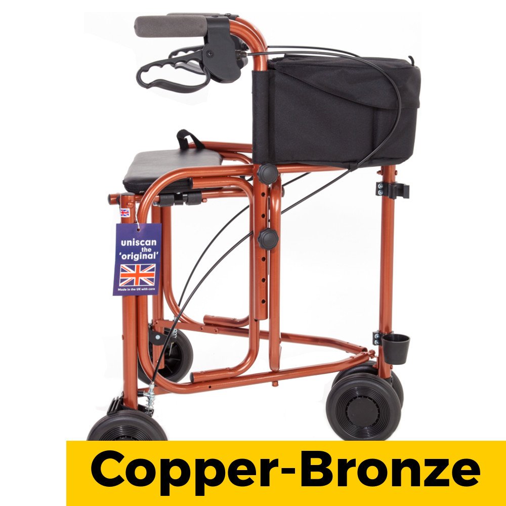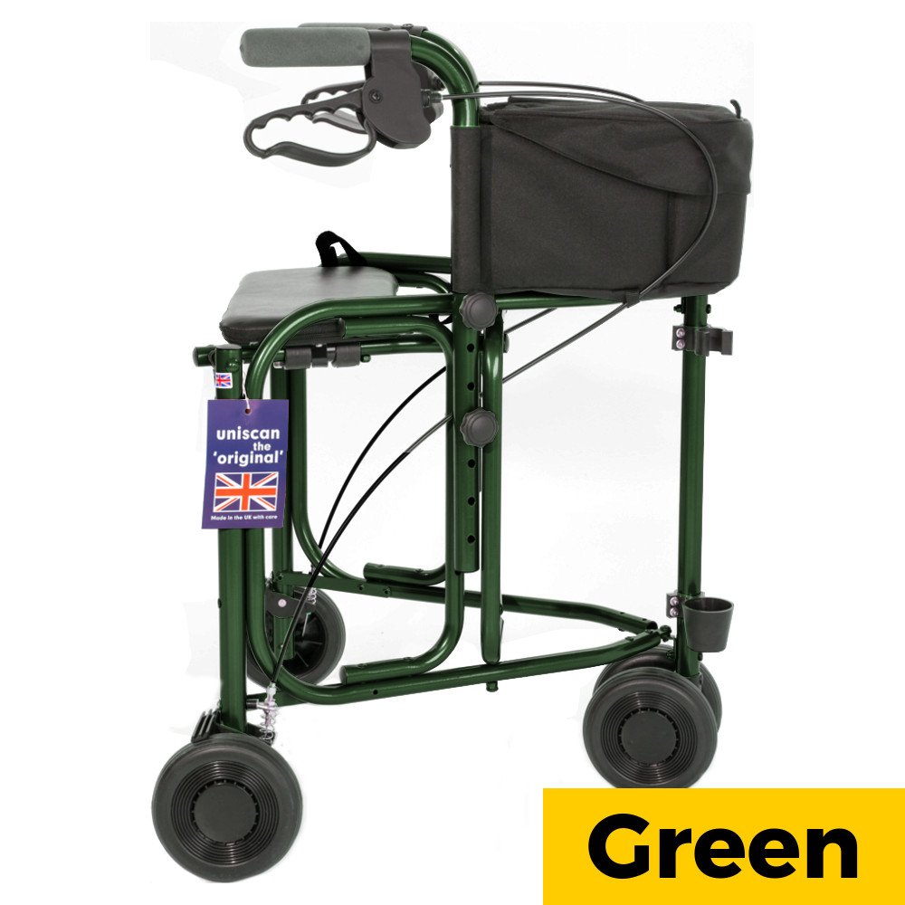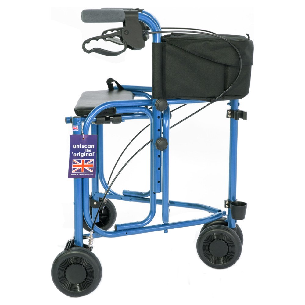 The ultimate in 3-wheel walkers is not only ultra-lightweight, but has a built-in seat, plus it folds and locks together for easy storage. The walker features a fold-down seat, a shopping caddy, walking stick holder and a choice of frame colours.