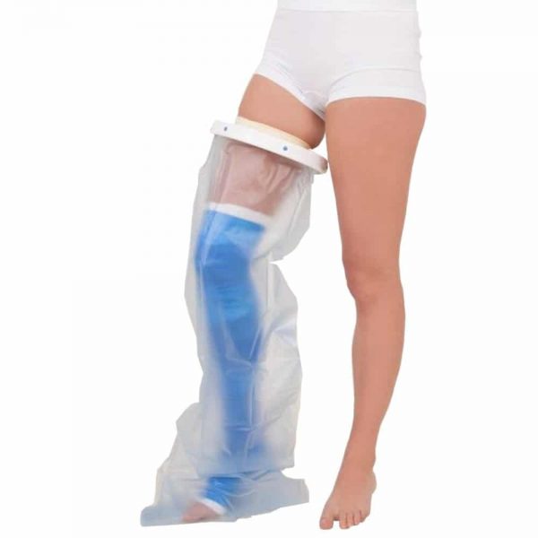 This comfortable waterproof protectors simply slip over the cast or dressing on the leg to protect them when taking a bath or shower. The cast protectors are re-usable and are intended for single patient use only. Not suitable for use with open or undressed wounds or when swimming.